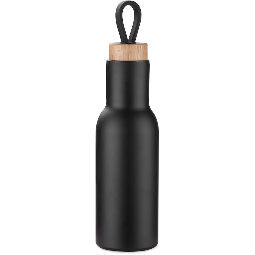 Gourde isotherme au design élégant. La Holloway est fabriquée en acier inoxydable, avec un bouchon en bois. Le bouchon est équipé d'une poignée en silicone. Les boissons y restent chaudes pendant jusqu'à 12 heures. Livrée dans un emballage en carton brun.