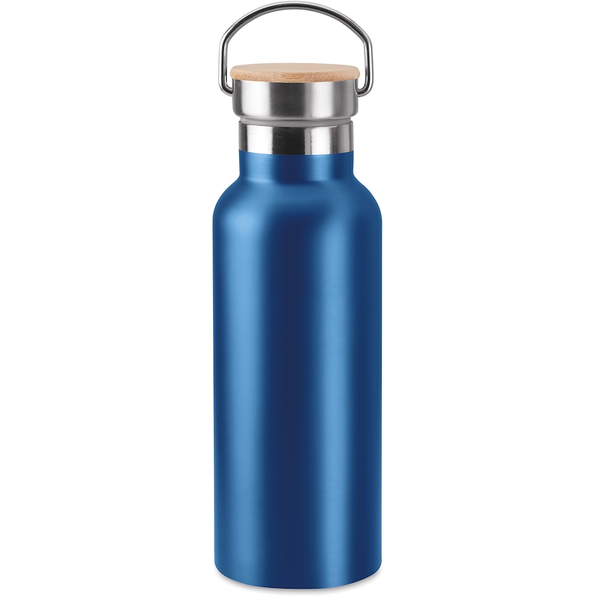 Gourde isotherme au design moderne en acier inoxydable. La Longmont possède des parois double et peut être utilisée avec des boissons chaudes comme froides. Les finitions du bouchon sont en bambou véritable. La gourde est entièrement hermétique.