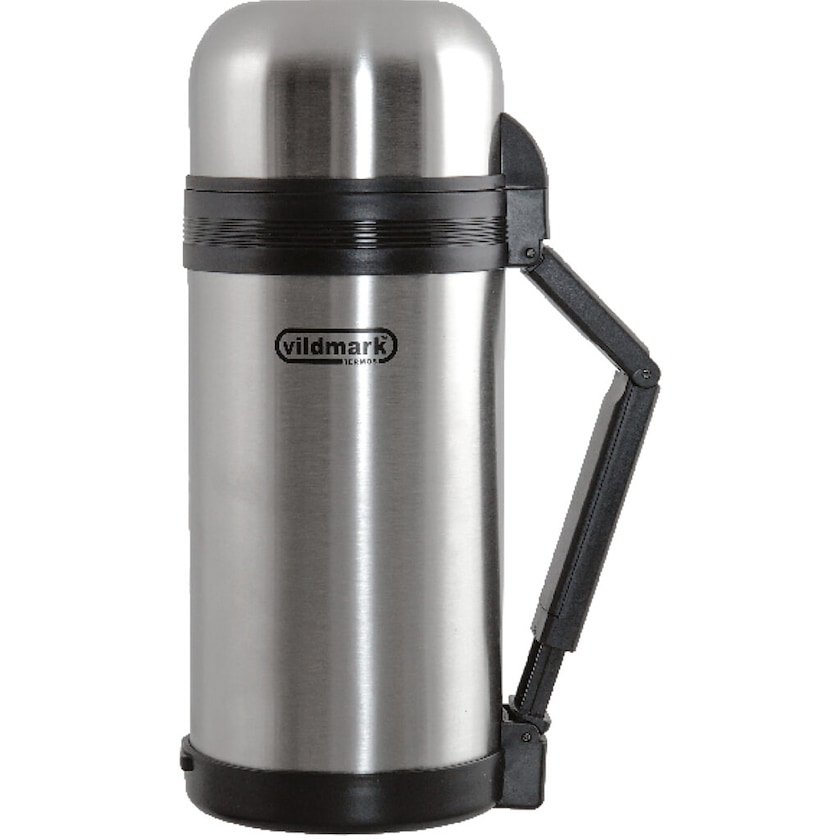 Thermos pour nourriture et boisson. Le thermos a deux mugs et une anse pratique pour faciliter le service.