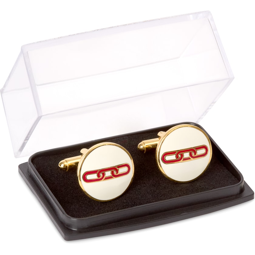 Boutons de manchette haut de gamme en émail et laiton avec motif personnalisé dans le nombre de couleurs de votre choix. Les boutons de manchette peuvent être obtenus soit dans notre forme ronde standard, soit dans la forme de votre choix. L'émail peut être de n'importe quelle couleur et le laiton peut être obtenu avec une finition dorée ou argentée. Livré dans une jolie boîte cadeau.