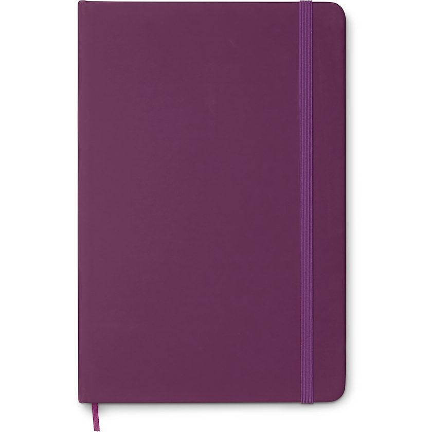 Bloc-note au format A5 avec couverture en cuir synthétique et 80 feuilles lignées. L'Amyra A5 a des coins joliment arrondis et une bande élastique pour le maintenir fermé lorsqu'il n'est pas utilisé. Il peut être acheté à partir de 25 pièces seulement. L'un de nos carnets imprimés les plus populaires, et de loin.