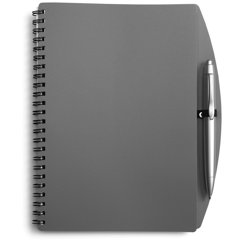 Bloc-notes A5 avec couverture givrée et stylo assorti.