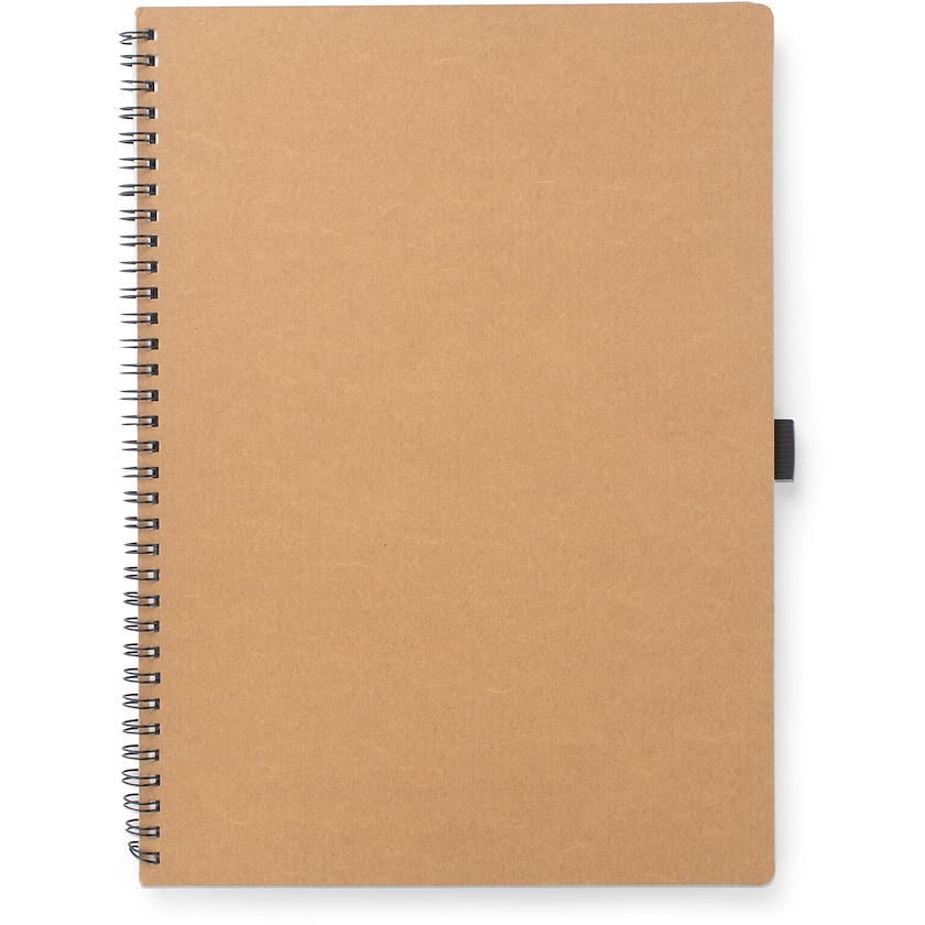 Bloc-note écologique avec pages en papier de pierre. Le carnet à spirale Isla est équipé d'une spirale noire et d'un porte-stylo élastique. Le papier de pierre est un papier écologique, à la fois durable et résistant à l'humidité. Le bloc-note contient 60 pages lignées. La couverture est fabriquée en carton standard. Livré avec un conditionnéement individuel dans un sachet biodégradable.