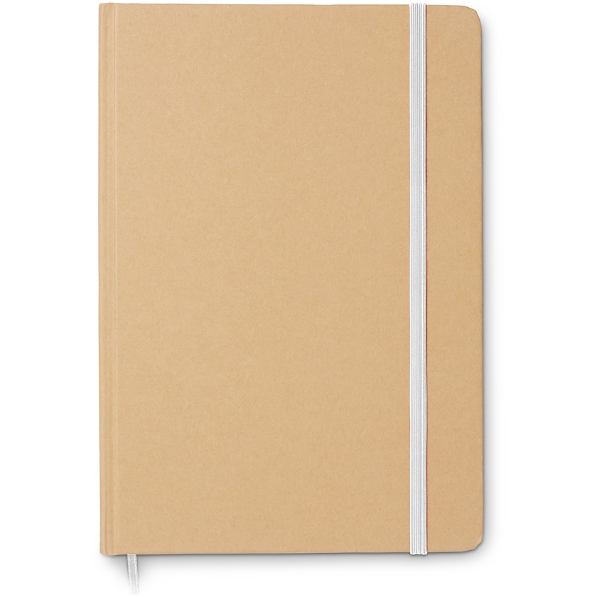 Carnet en matériau recyclé avec une grande surface d'impression. Le Kellan A5 compte 80 feuilles lignées. Un bon choix écologique!