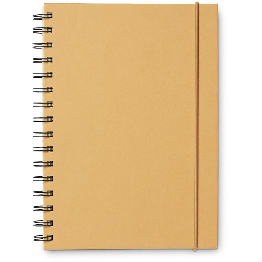 Carnet à spirale écologique en papier recyclé. Le carnet à spirale possède une couverture épaisse en carton et comporte 80 feuilles lignées. Les feuilles sont marquées d'un symbole de recyclage. Choisissez entre une spirale blanche, verte ou noire.