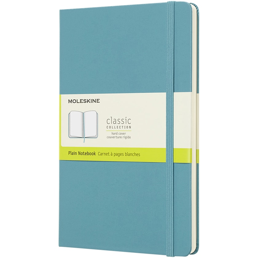Carnet relié non ligné par Moleskine. Un classique! Ce carnet possède des coins joliment arrondis et un marque-page. Les feuilles sont non lignées, couleur ivoire. À l'arrière, une poche permet de ranger des feuillets libres. Uniquement avec impression monochrome.