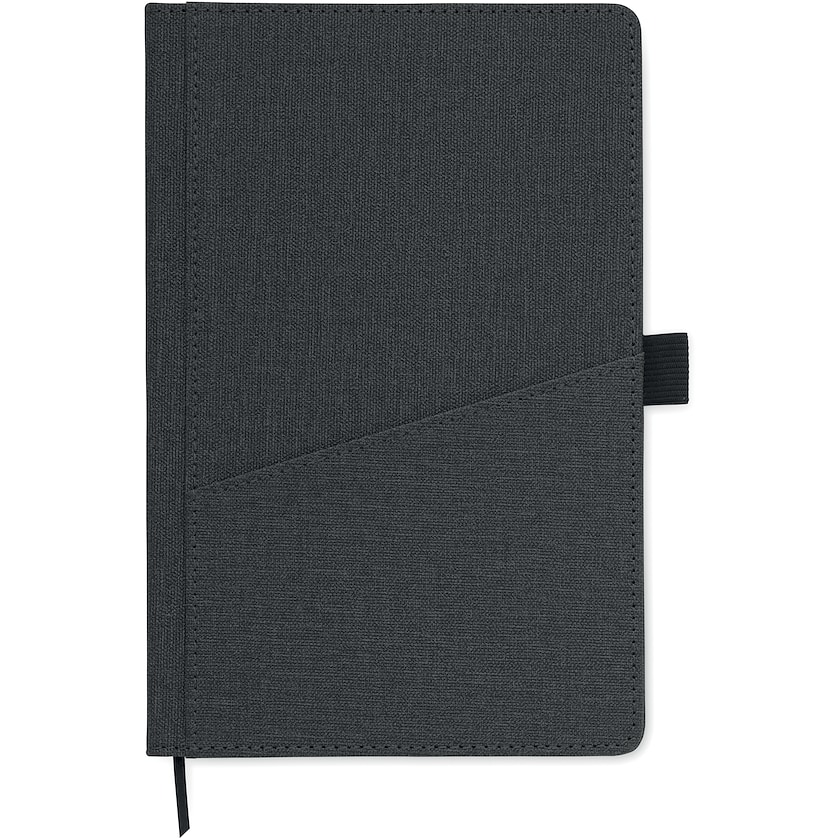 Carnet avec pochette pour téléphone portable sur le devant. L'intérieur se compose de 80 feuilles lignées de papier recyclé.