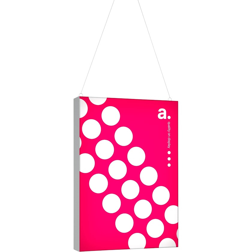 Petit caisson lumineux à suspendre au plafond. La boîte à lumière est éclairée par un système de lumières LED de pointe qui garantit qu'il éclairera tout le sujet. Le motif est imprimé sur un tissu en polyester avec une méthode d'impression spécialement développée qui garantit des détails nets et des couleurs claires. Le motif est placé des deux côtés du caisson lumineux. Lorsqu'il est temps de changer de motif, il vous suffit de nous commander un nouveau tissu. L'installation est rapide et facile.
