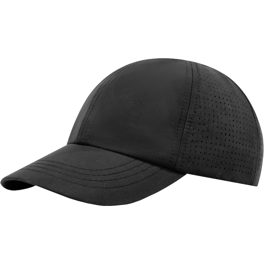Casquette écologique personnalisable disponible à partir de 10 unités. La casquette est en polyester 100% recyclé. À l'arrière se trouve une attache en métal. La personnalisation est réalisée par impression.