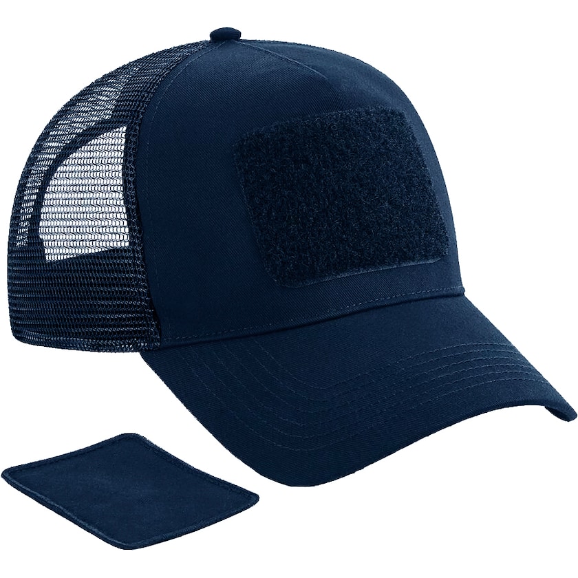 Casquette trucker avec étiquette en tissu amovible tendance. La personnalisation est réalisée sur l'étiquette en tissu. Une casquette pleine de style !