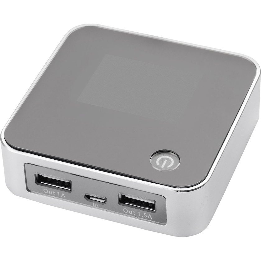Batterie externe dont le logo s'allume en pressant un bouton. Le Concord est une batterie externe puissante avec une armature en métal et une face avant en plastique. Le motif est gravé sur le devant et s'allume lorsque l'on appuie sur un bouton. La batterie externe possède 2 prises USB qui lui permettent de charger deux appareils à la fois. Un écran affiche le niveau de batterie. Input 5V/1A, output 5V/1A & 2A. Livrée avec câble micro-USB.