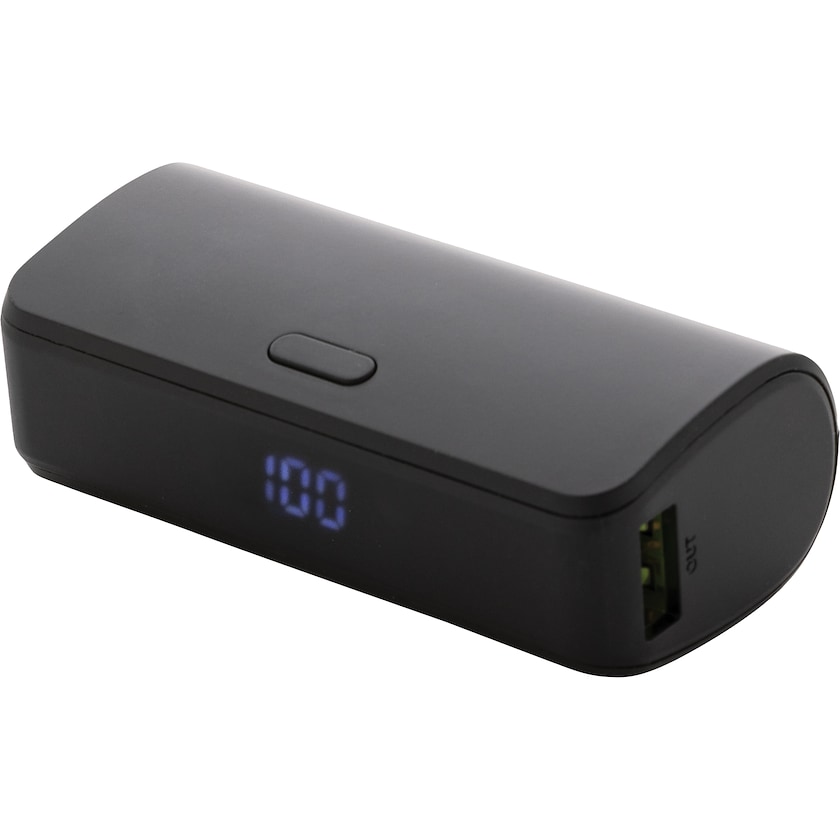 Powerbank à chargement rapide en ABS recyclé certifié RCS. Équipé d'un port USB-A 3.0 à charge rapide et d'un port type-C de 20 W, qui permet de charger simultanément deux appareils. Un écran LED indique la capacité de charge restante.