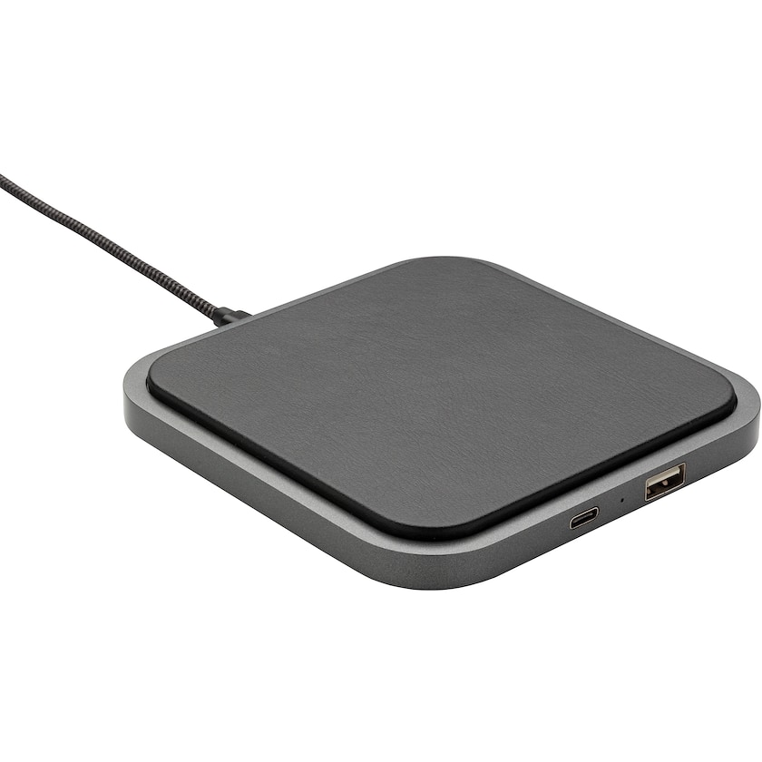 Élégant chargeur sans fil par le fabricant exclusif Swiss Peak. Placez simplement votre smartphone sur le plateau pour le recharger. Il est également possible de le recharger par câble. Livré dans une boîte cadeau.