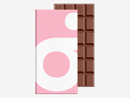 Notre conseil : privilégiez la simplicité. Un chocolat imprimé est souvent consommé rapidement, vous n'avez donc que peu de temps pour attirer l'attention du client. Souvent, votre marque et un court texte suffisent.