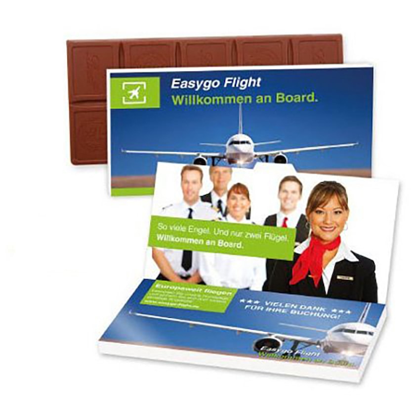 Tablette de chocolat Lindt Excellence dans un emballage papier imprimé en 4 couleurs. Choisissez parmi quatre goûts différents. L'emballage papier inclue une carte dépliable pour une meilleure efficacité marketing.