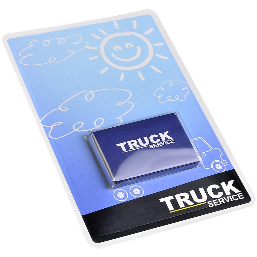 Rectangle en chocolat de 10 grammes avec une grande valeur publicitaire. L'emballage du chocolat, tout comme la carte publicitaire, sont personnalisés par impression photo en 4 couleurs, entièrement suivant vos souhaits. Le chocolat et la carte sont placés dans un emballage plastique protecteur. Choisissez parmi différents goûts et couleurs de papier d'aluminium.