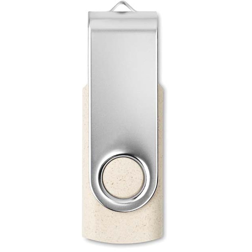 Clé USB écologique avec impression ou gravure laser. Argaty est composé de métal et d'un mélange écologique de paille de blé et de polypropylène. Il peut être imprimé en deux couleurs maximum.