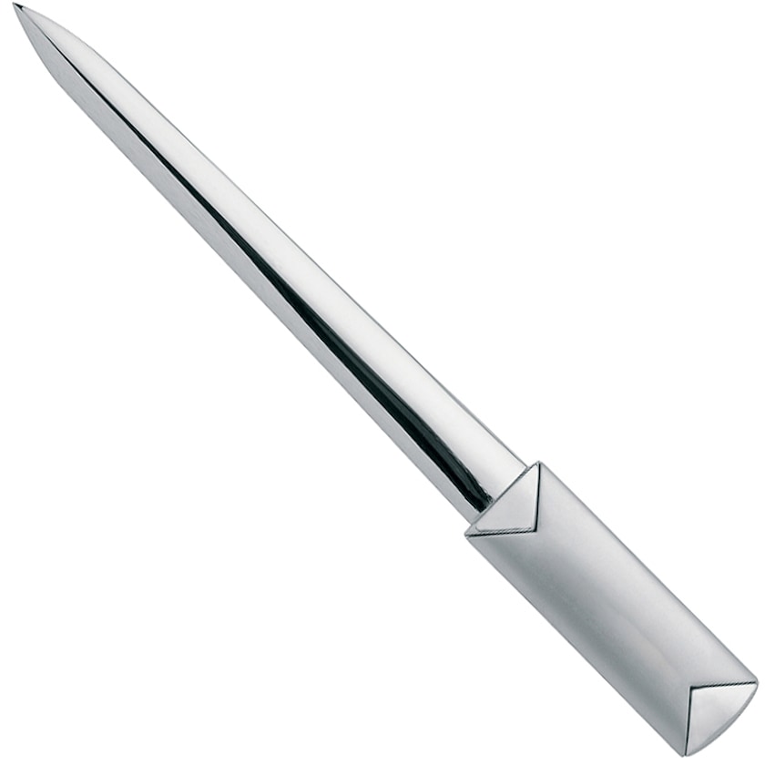 Élégant coupe-papier en métal livré dans une boîte en carton noire.