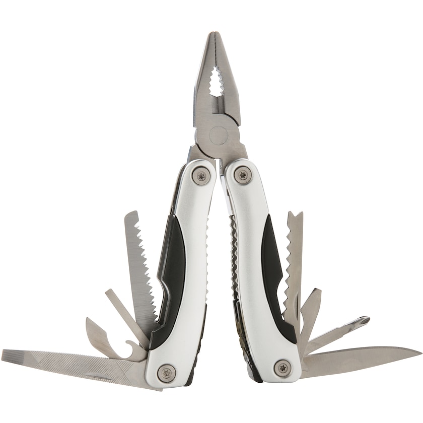 Outil multifonctions en aluminium avec 14 fonctions. Livré dans un étui de rangement pratique.