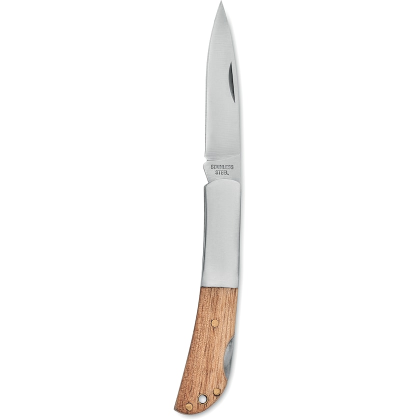 Couteau de poche en acier inoxydable et manche en bois d'acacia. La longueur de la feuille est de 6 cm.