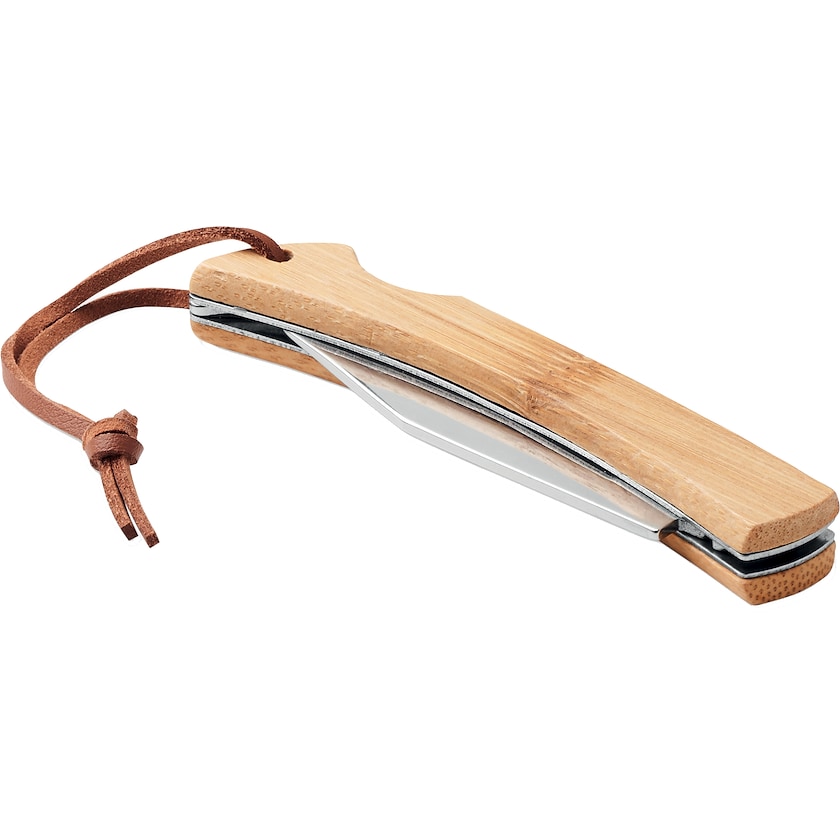 Couteau de poche en acier inoxydable et bambou. Parfait pour le camping ou une promenade en pleine nature.