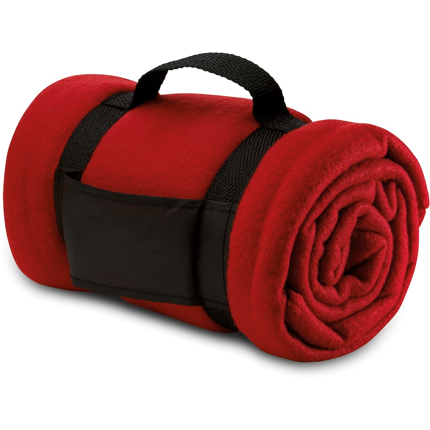 Une couverture en laine polaire chaude pour les journées fraiches! L'impression est effectuée sur la sangle.
