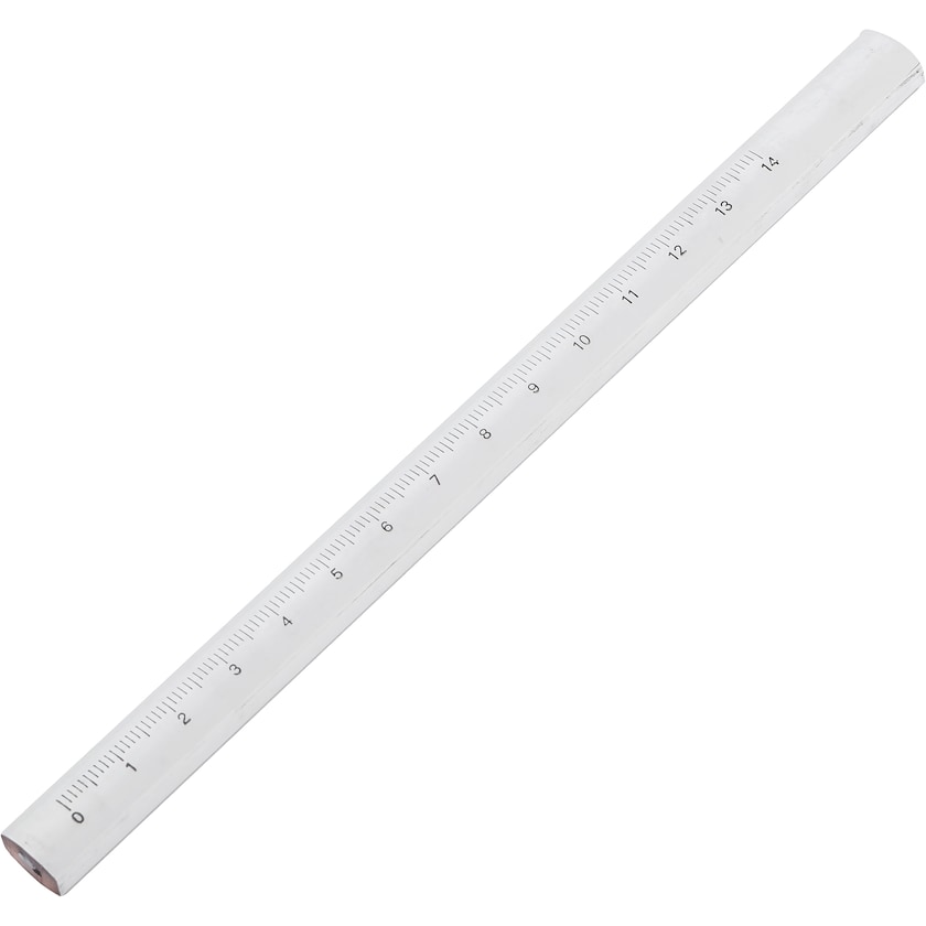 Crayon de charpentier avec indication de mesure. Grâce aux gradations, le crayon de charpentier peut également servir d'instrument de mesure. La mine a une dureté F.