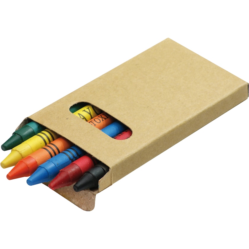 Petit set personnalisé de 6 crayons de cire dans une boîte en carton couleur nature. Les enfants vous font la tête? Donnez-leur des crayons de cire !