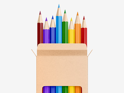 Crayons de couleur dans un emballage entièrement personnalisé suivant vos souhaits.