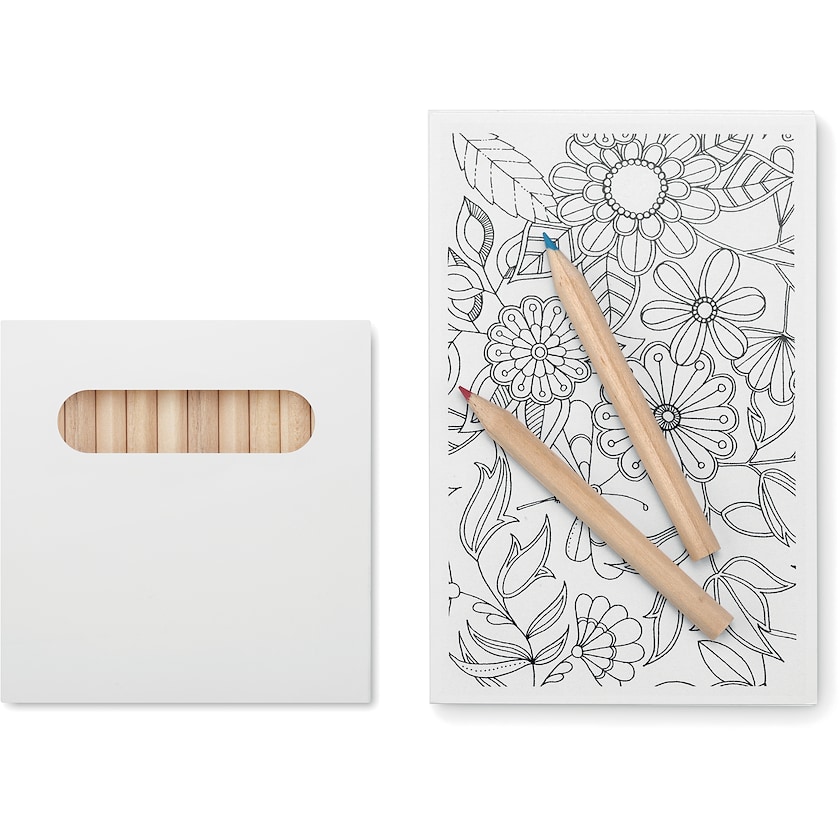 Set comprenant des crayons de couleur et des feuilles doodle à colorier. Le set s'adresse principalement aux adultes, dans le but d'amener décontraction et pleine conscience. Le set comprend 10 feuilles et 12 crayons de couleur. La personnalisation est effectuée sur la boîte en carton des crayons de couleur.