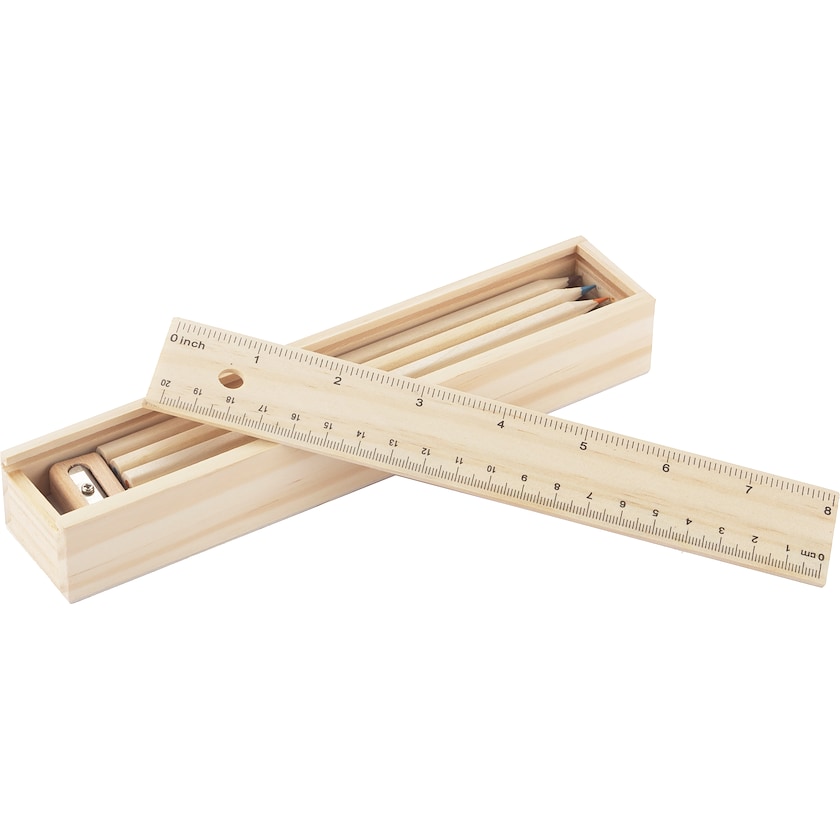Set de 12 crayons de couleur, une règle et une gomme. La personnalisation est effectuée sur la règle.