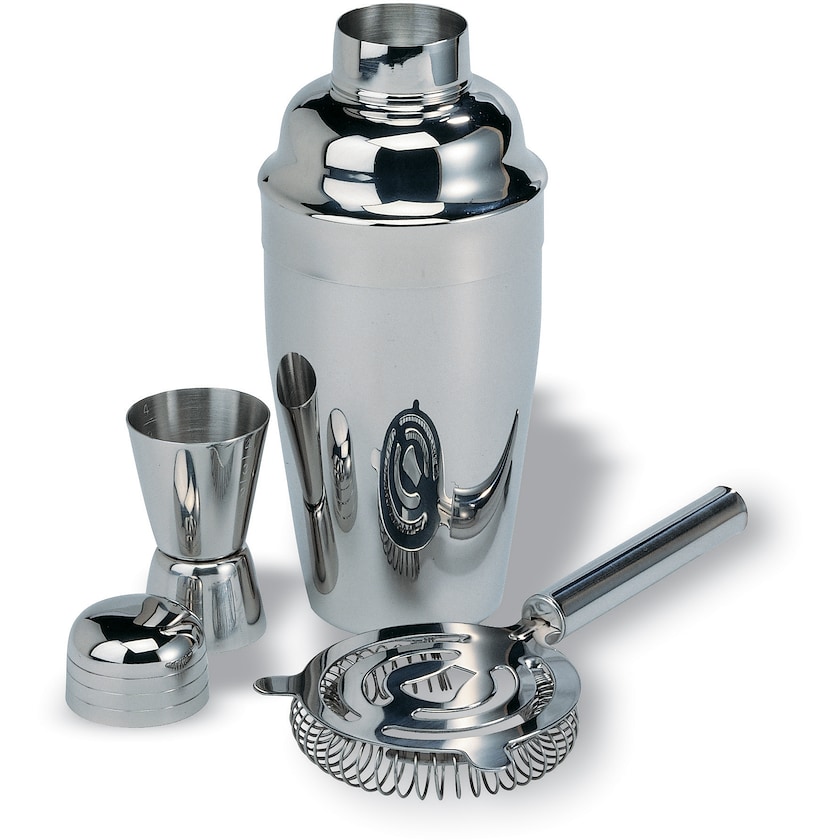 Kit pour cocktail en acier inoxydable. Tout ce dont vous avez besoin pour devenir votre propre barman! Le kit comprend un shaker de 50 cl, des verres doseurs et une passoire à cocktails. L'ensemble est livré dans une boîte cadeau noire. La personnalisation est effectuée sur le shaker.