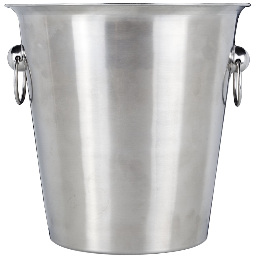 Seau à champagne haut de gamme en acier inoxydable. Le seau est équipé de poignées sur les côtés. Remplissez-le de glace ou d'eau pour garder votre champagne bien frais.