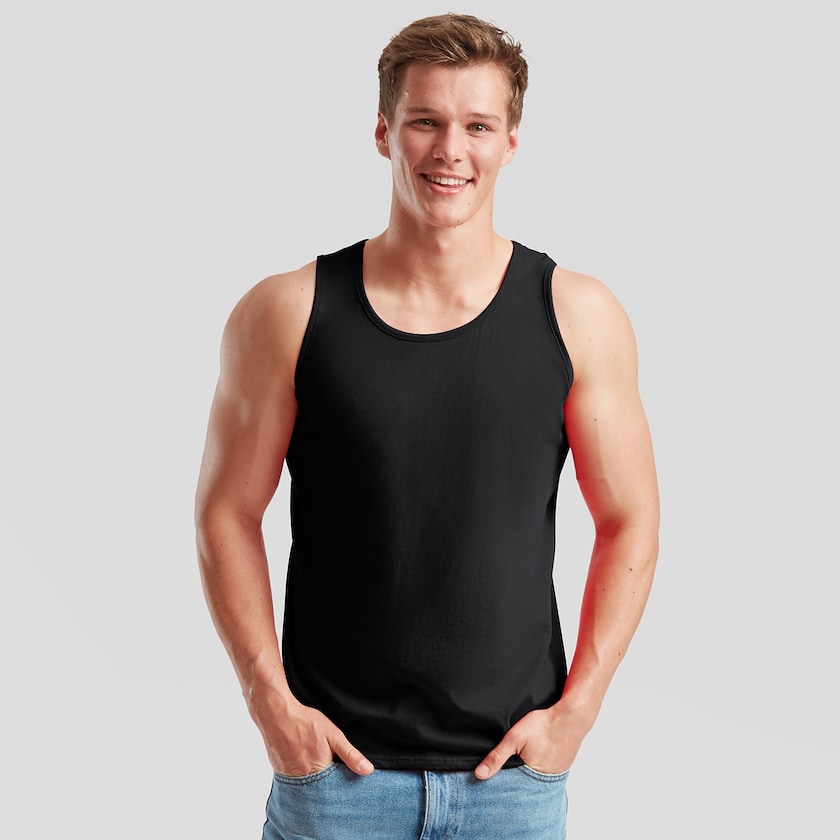 Débardeur sportif abordable par Fruit of the Loom. Les débardeurs sont livrés sous emballage plastique individuel. Également disponible en version version femme.