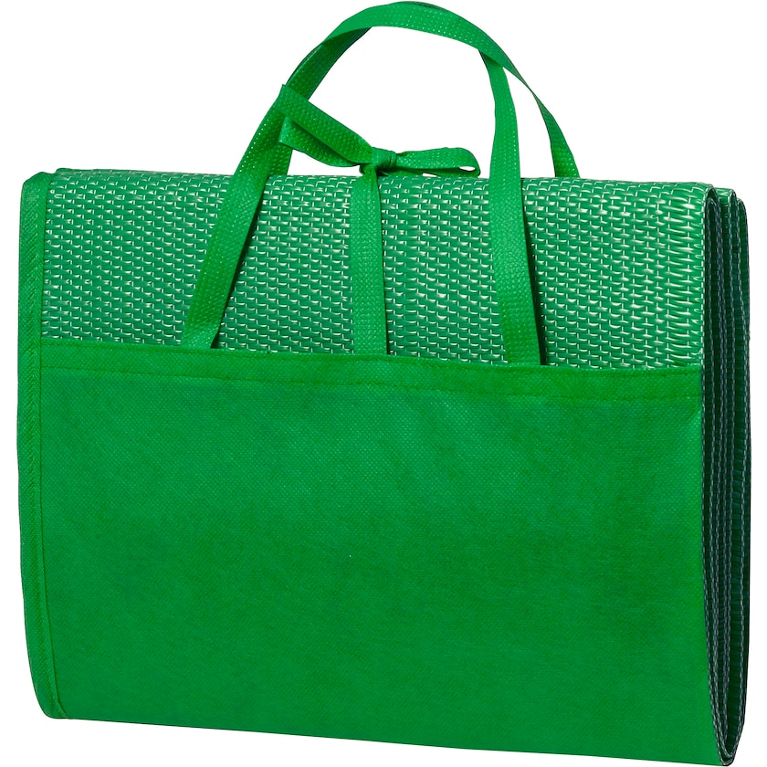 Tapis de plage avec anses pratiques. Le Nissi est fabriqué en plastique résistant et apporte un bon confort, même sur sols inégaux.