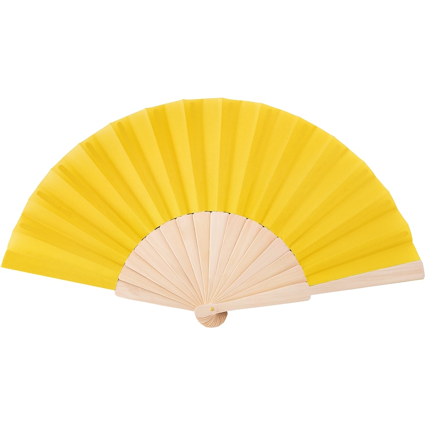 Éventail en bois pour les chaudes journées d'été. Le tissu est fabriqué en polyester et coton. La personnalisation est effectuée soit par impression soit par gravure laser sur la partie boisée de l'éventail. Un cadeau estival fun et utile à la fois!