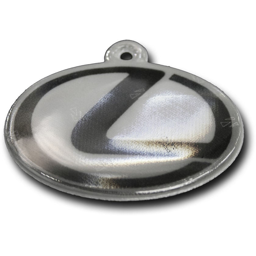 Catadioptre souple ovale en matériau réfléchissant de haute qualité. Les catadioptres sont livrés soit avec cordon et épingle de sûreté, soit avec chaînette boule en métal. Le matériau réfléchissant répond aux exigences de la directive EN1335:2001. Pour ne pas impacter ses qualités réfléchissantes, l'imprimé doit être apposé sous la surface réfléchissante.