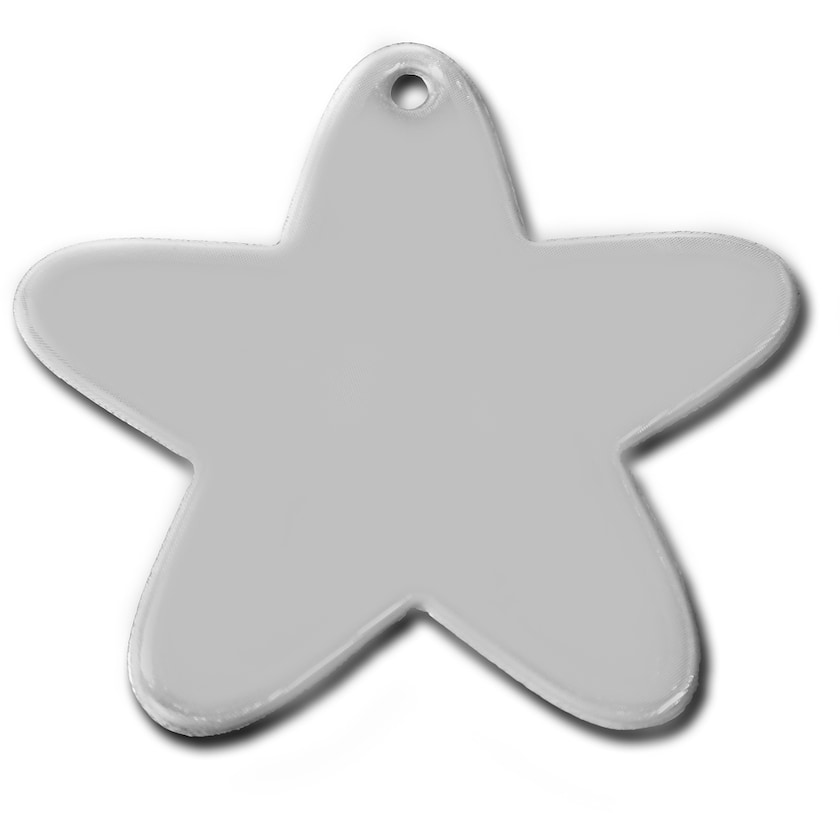 Catadioptre souple en forme d'étoile dans un matériau réfléchissant de haute qualité. Cassiopeia est livré soit avec cordon et épingle de sûreté, soit avec chaînette boule en métal. Le matériau réfléchissant répond aux exigences de la directive EN1335:2001 et est disponible en blanc ou jaune.. Pour ne pas impacter ses qualités réfléchissantes, l'imprimé doit être apposé sous la surface réfléchissante.