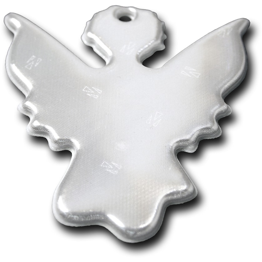 Catadioptre souple en forme d'ange en matériau réfléchissant de haute qualité. Le matériau réfléchissant est disponible en blanc ou en jaune. Livré soit avec cordon et épingle de sûreté, soit avec chaînette boule en métal. Le matériau réfléchissant répond aux exigences EN1335:2001. Pour ne pas impacter ses qualités réfléchissantes, l'imprimé doit être apposé sous la surface réfléchissante.