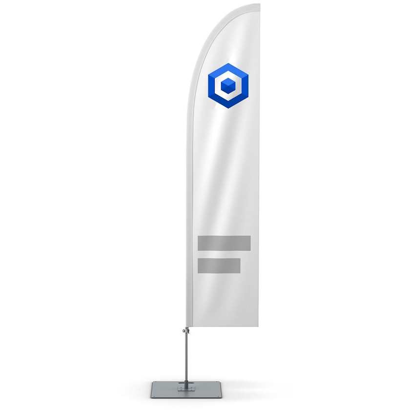 Drapeau de plage de 310 cm en forme de requin. Très populaire! Ce drapeau de plage est léger, résistant et propose une grande surface publicitaire. Le prix fait référence au drapeau de plage complet avec personnalisation sur un des côtés, le mat et un sac de rangement. Parfait pour une utilisation extérieure. N'oubliez pas de compléter avec un support de piquet adapté.