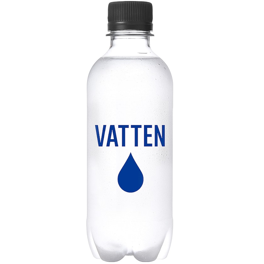 Bouteille d'eau de 33 cl avec étiquette transparente. Choisissez entre eau minérale plate ou gazeuse. Le bouchon est disponible en noir, blanc, bleu ou rouge. La consigne est incluse dans le prix.