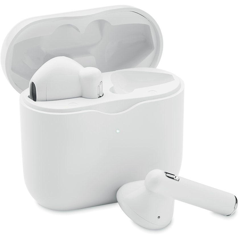 Ecouteurs sans fil avec microphone. Les écouteurs sont TWS, True Wireless Stero 5.3. La durée de lecture est de 4 heures avec une seule charge.