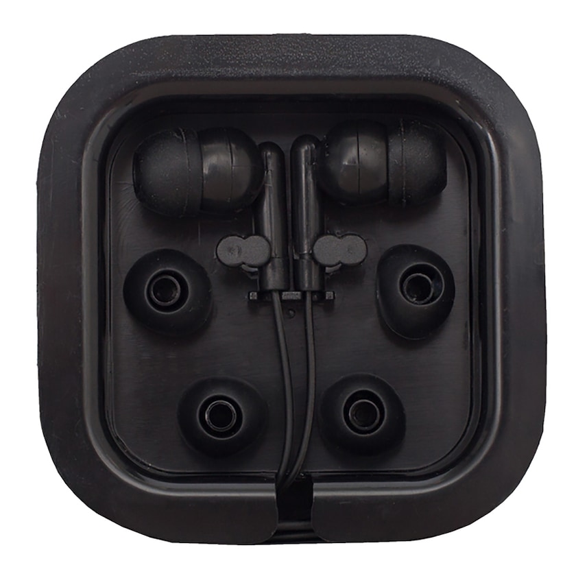 Écouteurs in-ear économiques dans une boîte cadeau. L'impression est effectuée sur la boîte cadeau.