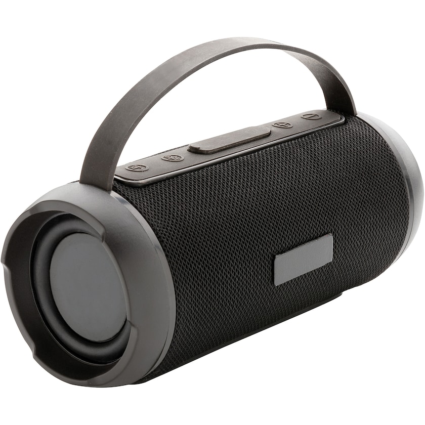 Enceinte sans fil étanche au son puissant. Parfaite pour un usage en extérieur. Grâce à sa poignée, elle est facile à emmener partout. L'enceinte possède une autonomie de 6 heures de jeu. L'impression est réalisée sur la plaque en métal.