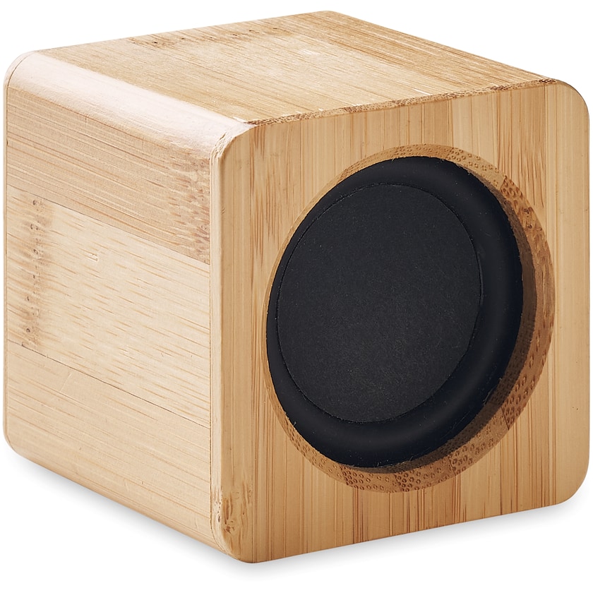 Enceinte sans fil en bambou véritable. L'autonomie est d'environ 4h avec un volume à 70%. La personnalisation est réalisée soit par impression soit par gravure laser.