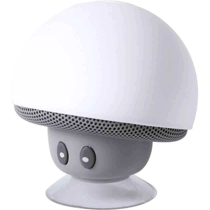 Enceinte Bluetooth petit format en forme de dôme. La base est équipée d'une ventouse qui permet de l'utiliser comme support pour smartphone. Câble d'alimentation inclus. L'impression peut être réaliser en deux couleurs maximum.