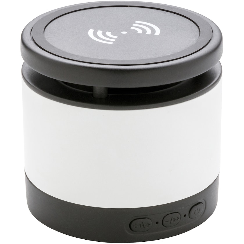 Combiné enceinte et chargeur sans fil pour smartphone. L'enceinte possède une puissance de 3W, le chargeur de 5W. L'enceinte possède une autonomie de jeu de jusqu'à 3 heures et une distance de réception de 10 mètres. Lorsque les deux fonctionnalités sont utilisées simultanément, le Pittsburgh doit être connecté à une source d'alimentation. Input: 5V/1A, output sans fil: 5V/1A 5W. Design protégé par copyright®.