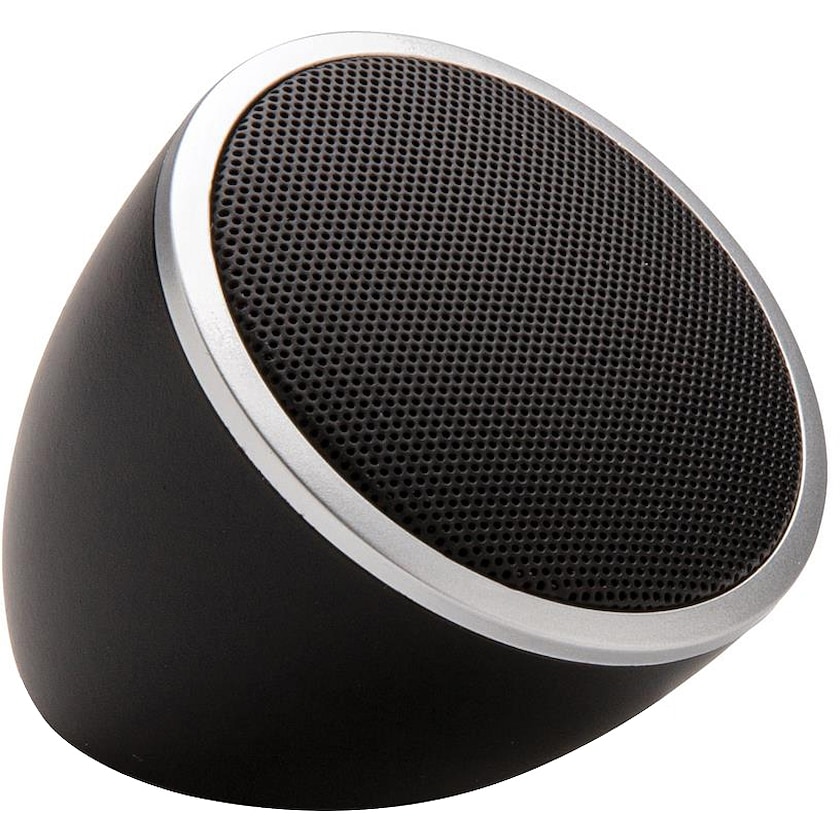 Petite enceinte puissante avec imprimé sur la grille de l'enceinte. L'autonomie est de trois heures sur une charge. L'enceinte est équipée d'un micro et d'une fonction de prise d'appel