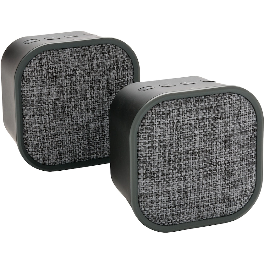 Set de deux enceintes sans fil de 3W. Est équipé d'une batterie permettant jusqu'à 3 heures de musique. À l'arrière un aimant permet de faire tenir les deux haut-parleurs ensembles. Parfait pour les petites fêtes! Livré dans une jolie boîte cadeau. Le prix de l'impression concerne l'impression sur l'un des haut-parleurs.