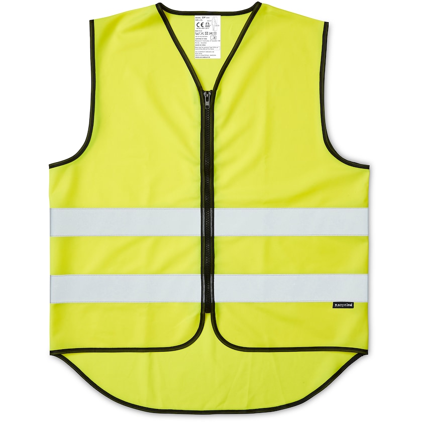 Gilet réfléchissant zippé en polyester recyclé. Les réflecteurs mesurent 55 mm de large. Le gilet réfléchissant se ferme par une fermeture éclair. Mélangez librement entre les tailles S/M et L/XL. Homologué CE et homologué selon EN ISO 20471:2013+A1:2016 classe 2.